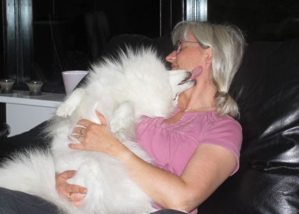 Bailey er meget kærlig og kælen, her på udstilling, men også hjemme deler hun gerne kys og kram ud, og elsker at ligge på skødet.