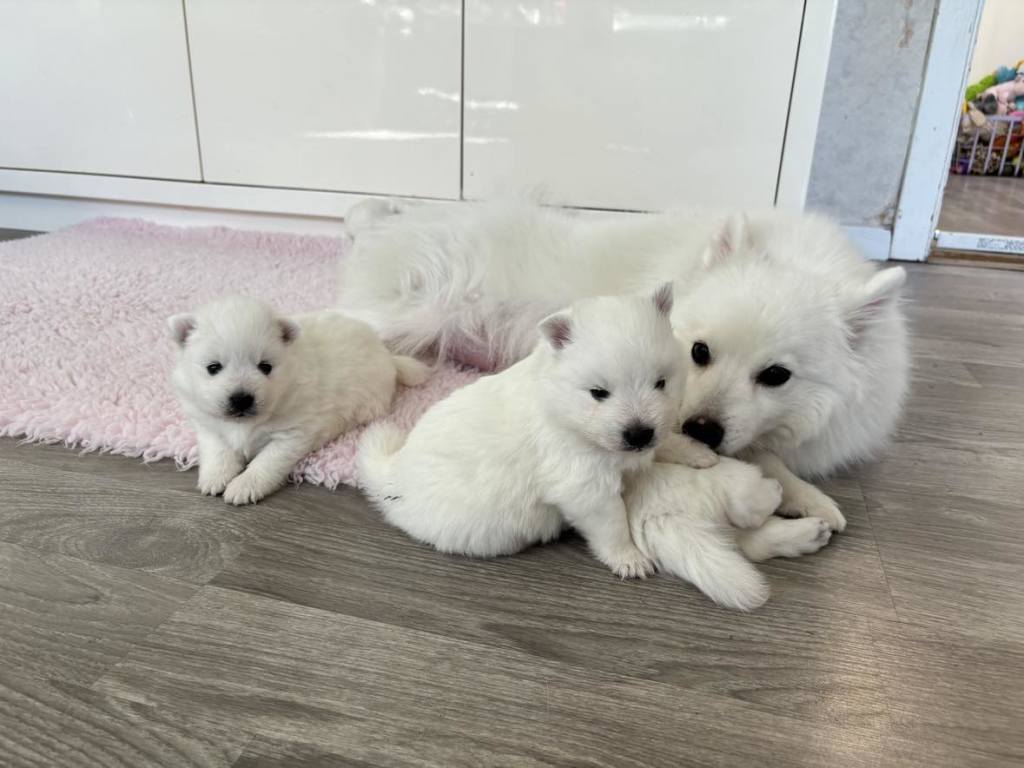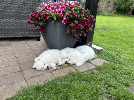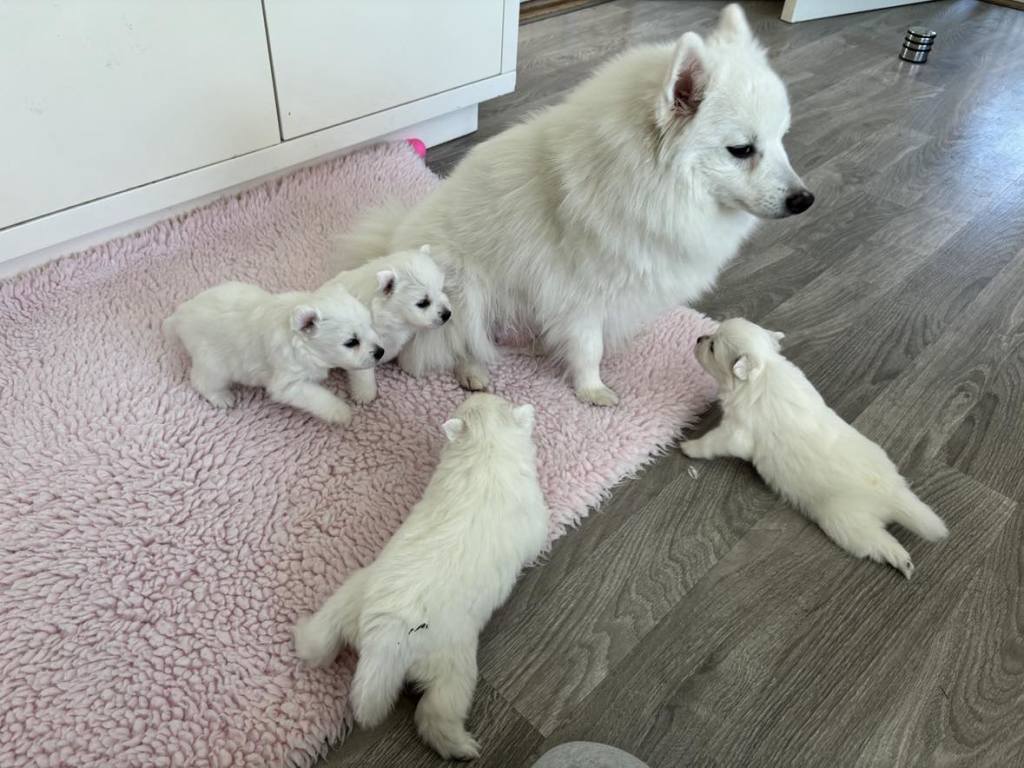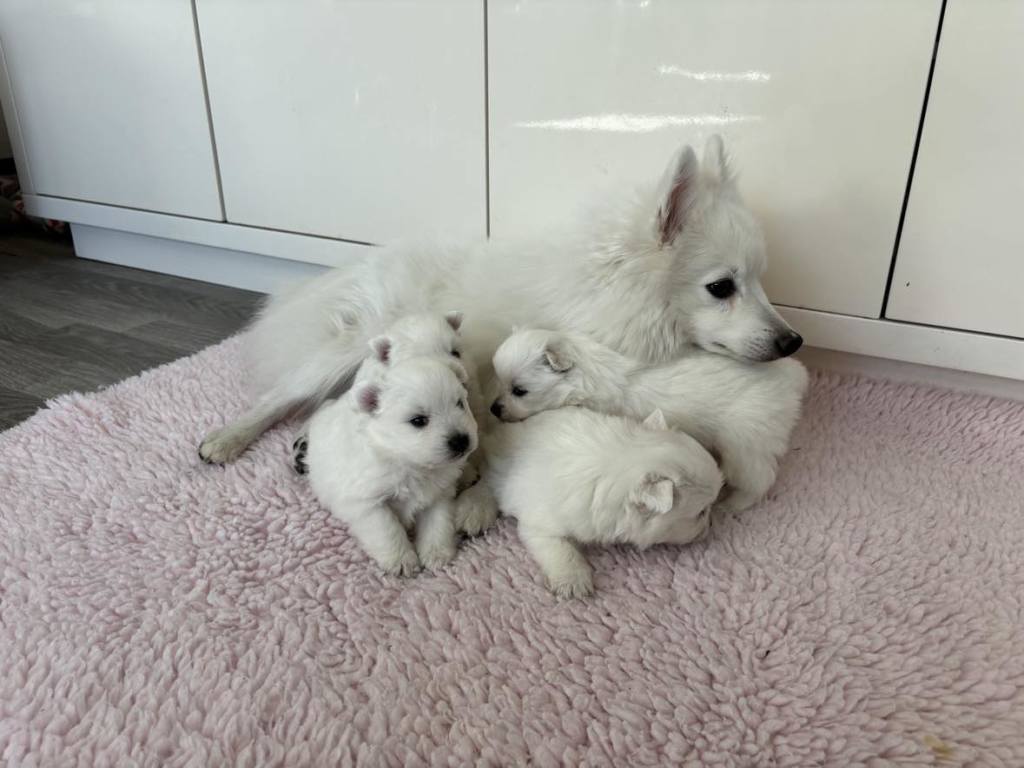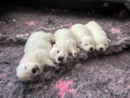 Fire mætte og tilfredse hvalpe